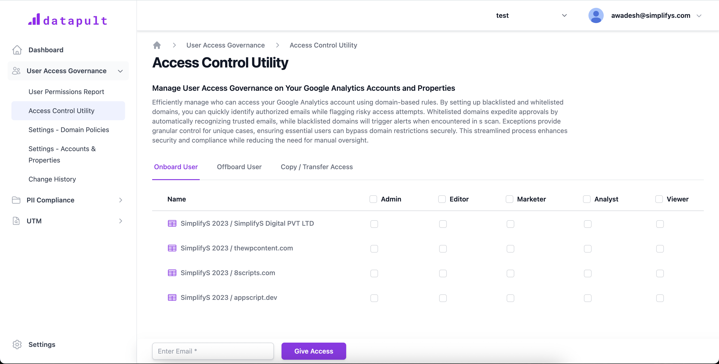 Monitor & control user access across GA accounts properties